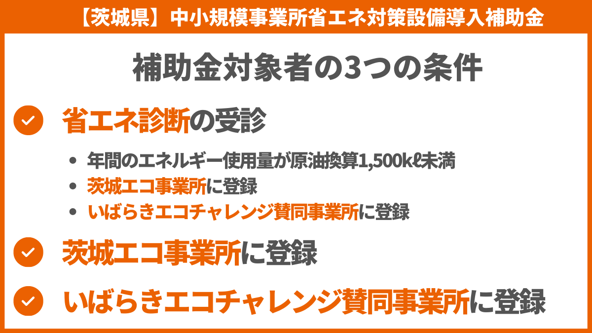 茨城県中小規模事業所省エネ対策設備導入補助金(省エネ補助金)の申請には条件がいくつもあります。