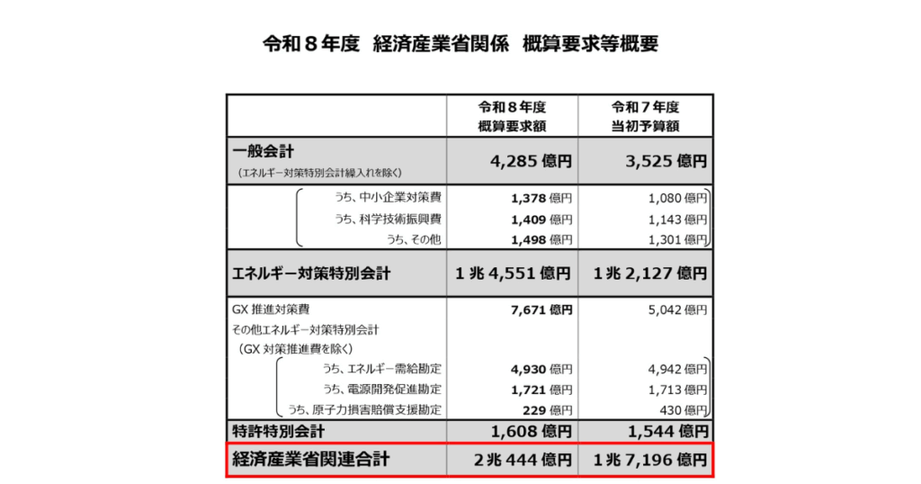 経済産業省が提出した概算要求(2026年度)は、総額で2兆444億円です。