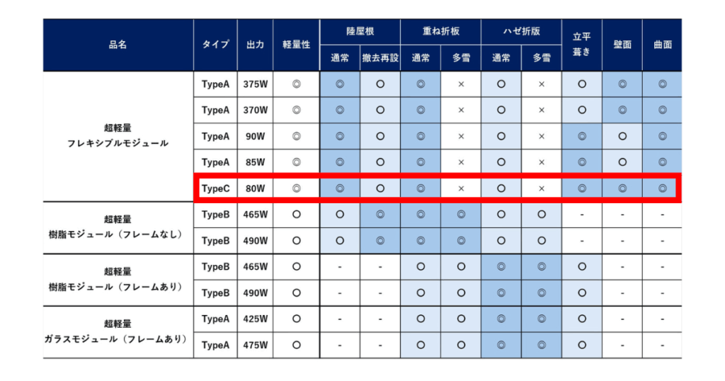 - 製品名:FLEXIBLE SOLAR G+ TypeC(超軽量フレキシブル・モジュール)