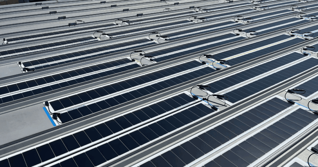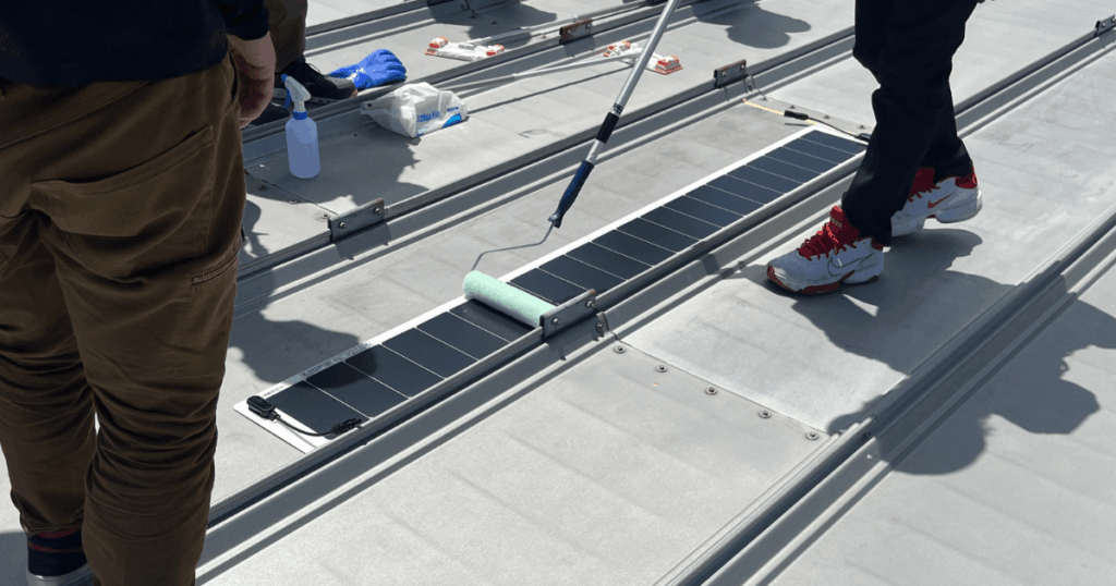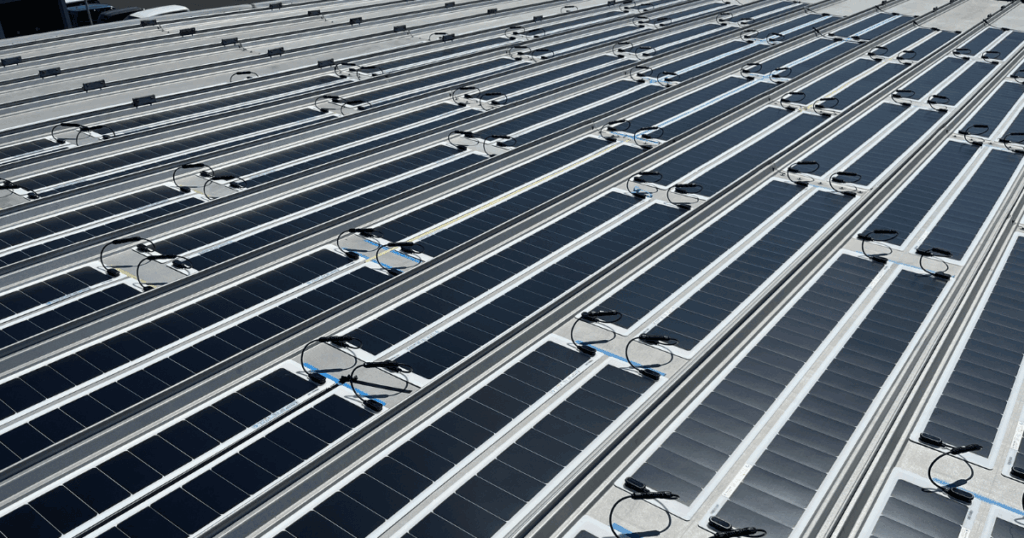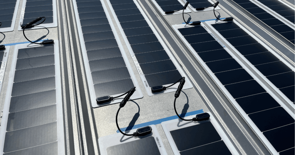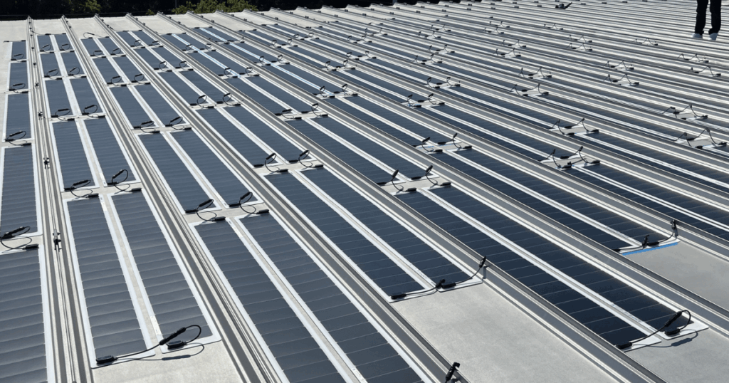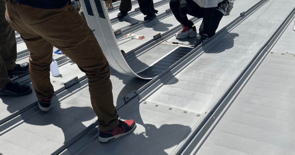 2025年5月、明電産業グループでは世界初のフレキシブルソーラーパネル(※製品詳細は下記参照)の設置工事を開始しました。