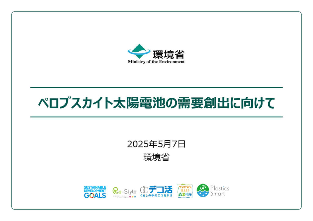 2025年5月7日、環境省は「ペロブスカイト太陽電池の需要創出に向けて」について発表した。
