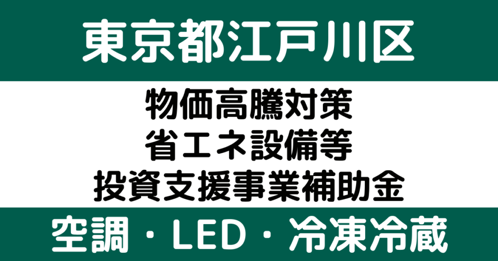 【令和8年】東京都江戸川区:物価高騰対策省エネ設備等投資支援事業補助金(空調/LED/太陽光/蓄電池)